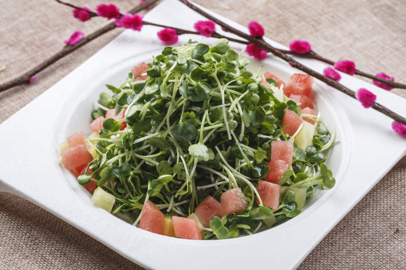 长方形白瓷盘装的剁椒辣酱蒸金针菇