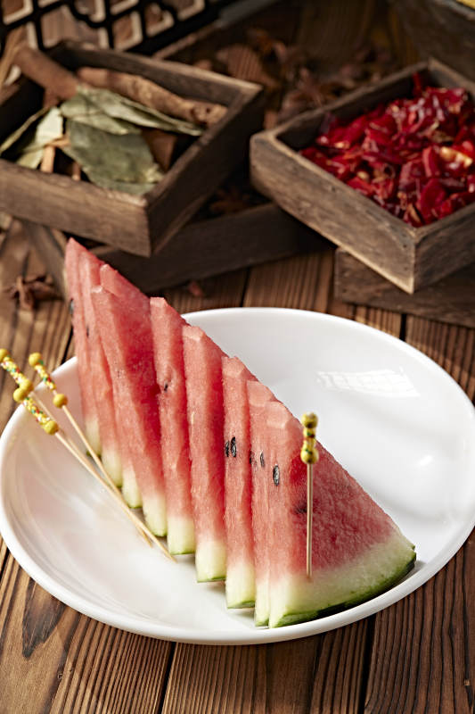 一盘切好的美味麒麟西瓜