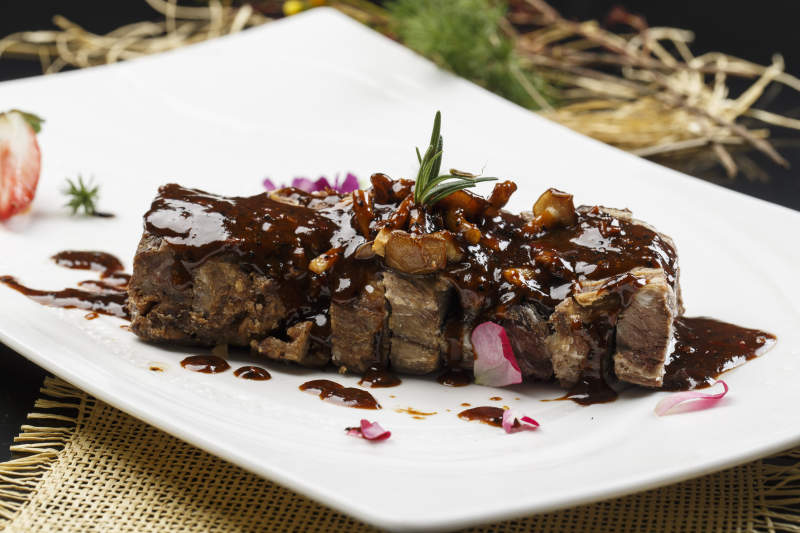 圆形白色瓷盘装的油炸汤圆口袋肉