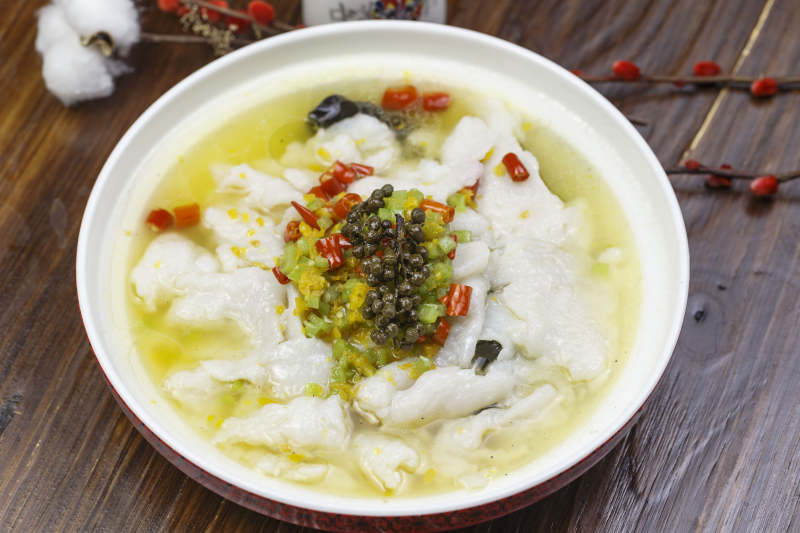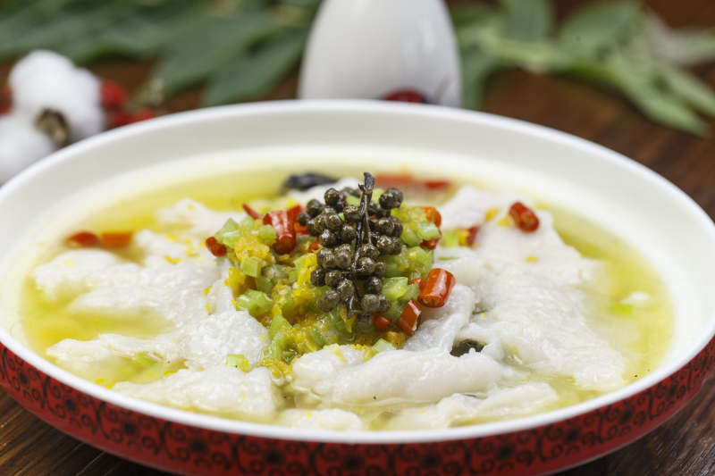 不锈钢贴盆装的香辣酸汤罗非鱼