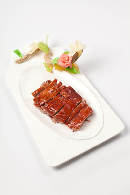 圆形白瓷盘装的芙蓉蛋蒸凤尾虾