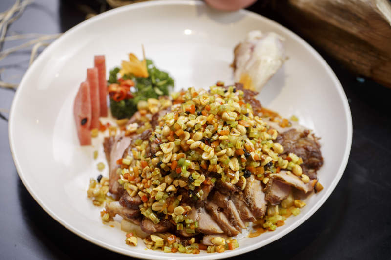 白色瓷碗装的麻辣口水鸡
