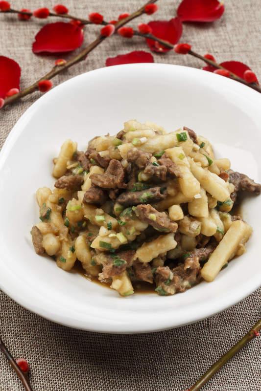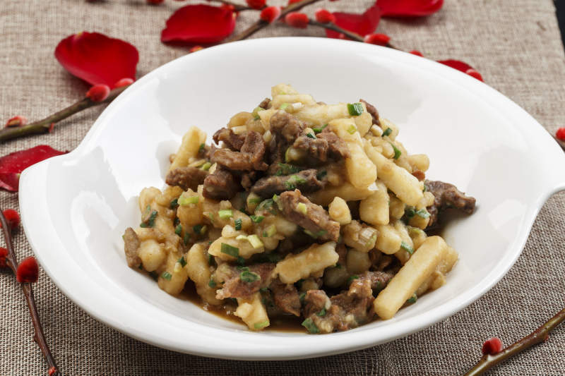 白色瓷餐具装的农家三碗香