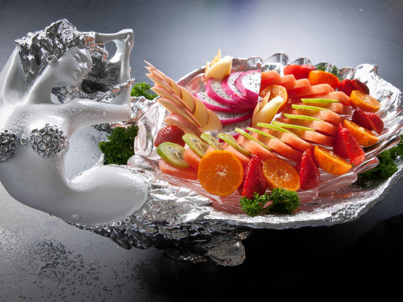 精美餐具装的的水果盘