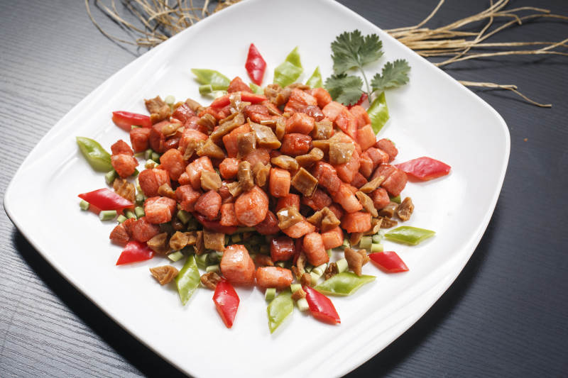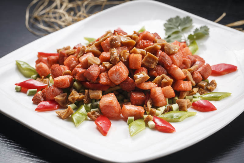 彩椒瓜条炒里脊肉丁