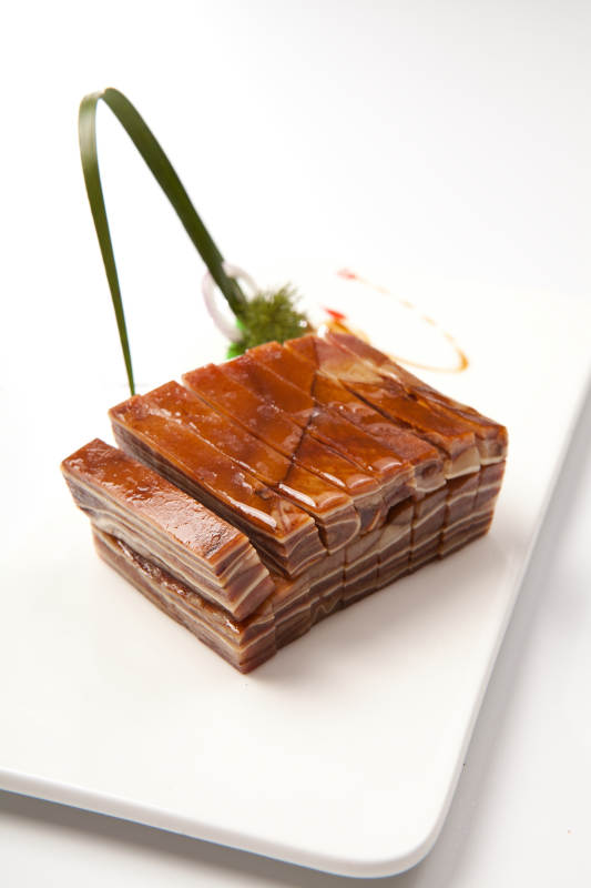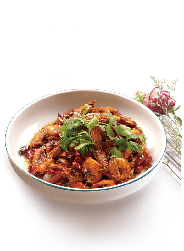 圆形白瓷盘装的芙蓉蛋蒸凤尾虾