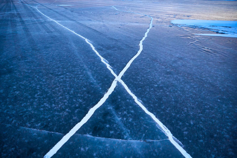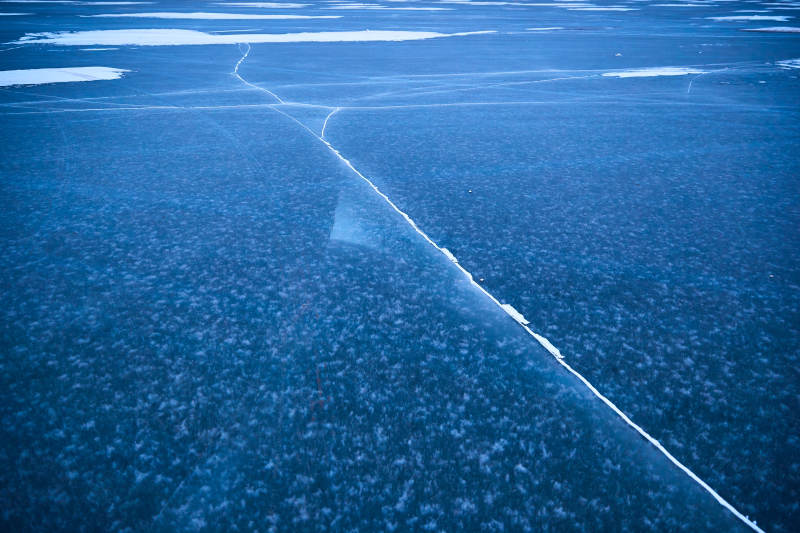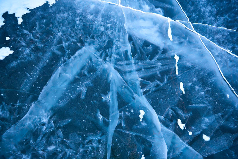 冬天冻结的湖面冰层花纹