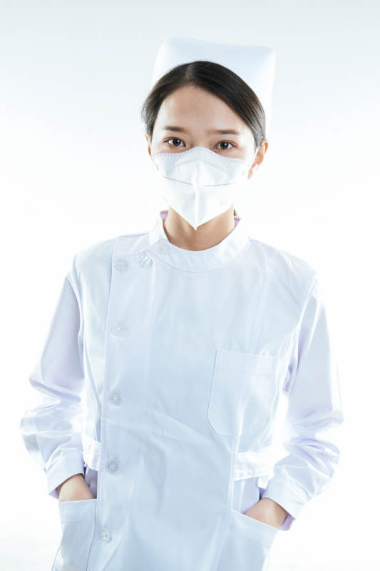 穿蓝色护士服佩戴听诊器口罩的女性医护人员