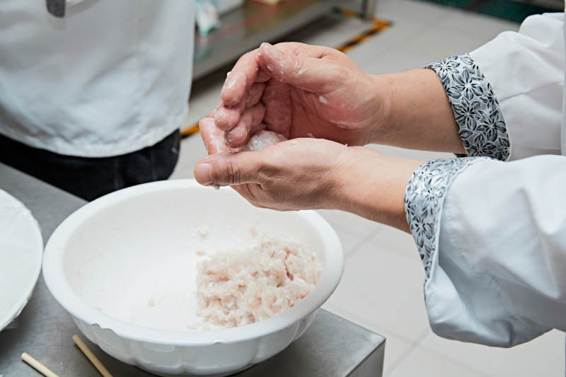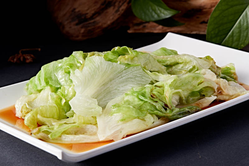 木质餐具装的杂粮饼时蔬配红烧肘子