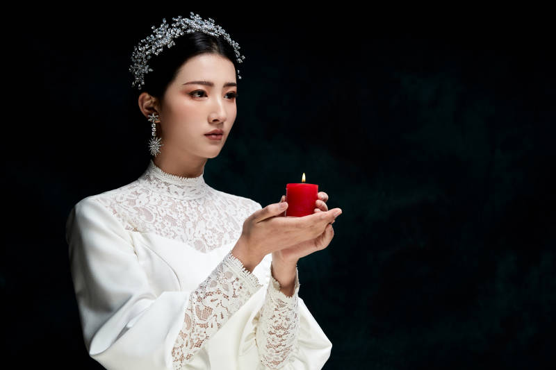 白背景里穿蓝色护士服手持病历夹的美女护士