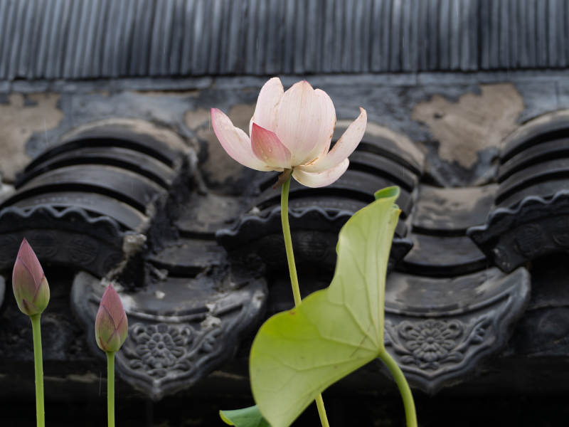 莲开古檐下