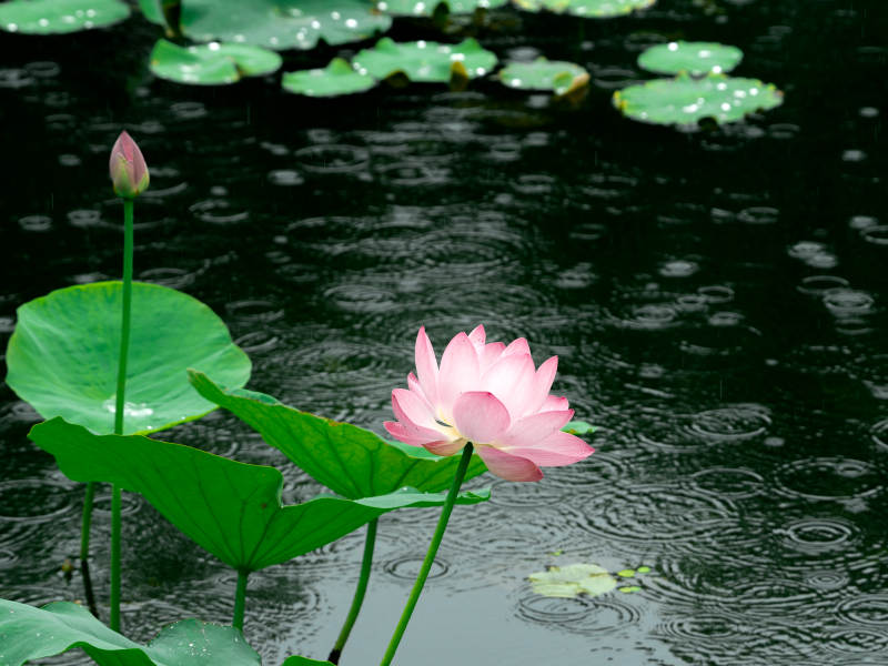 雨中荷花绽放