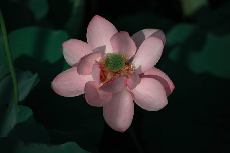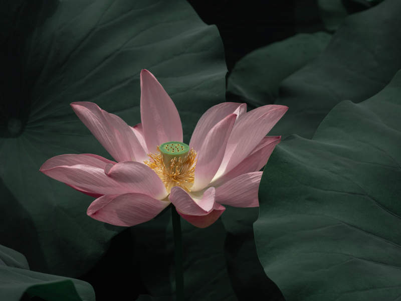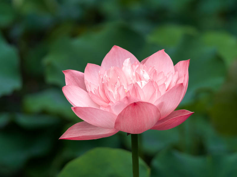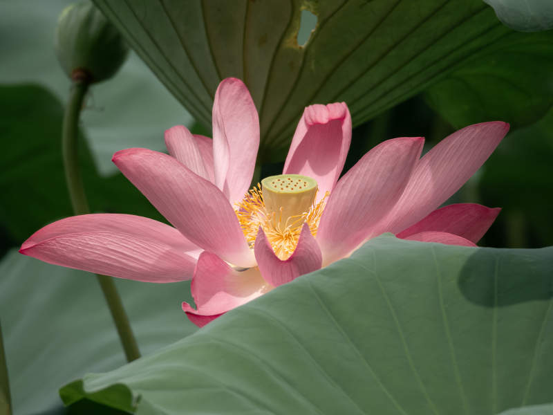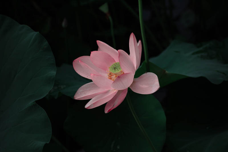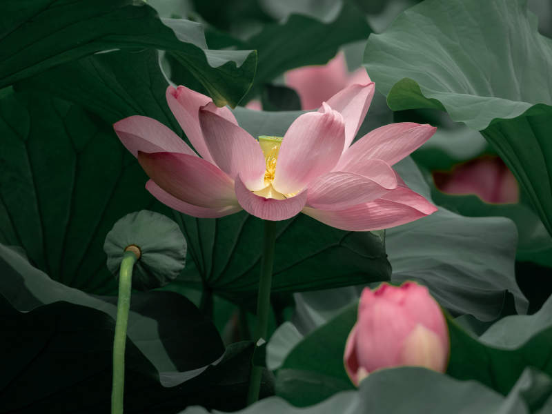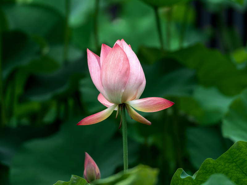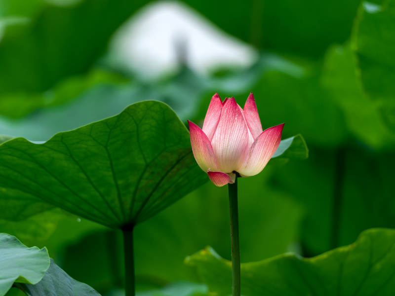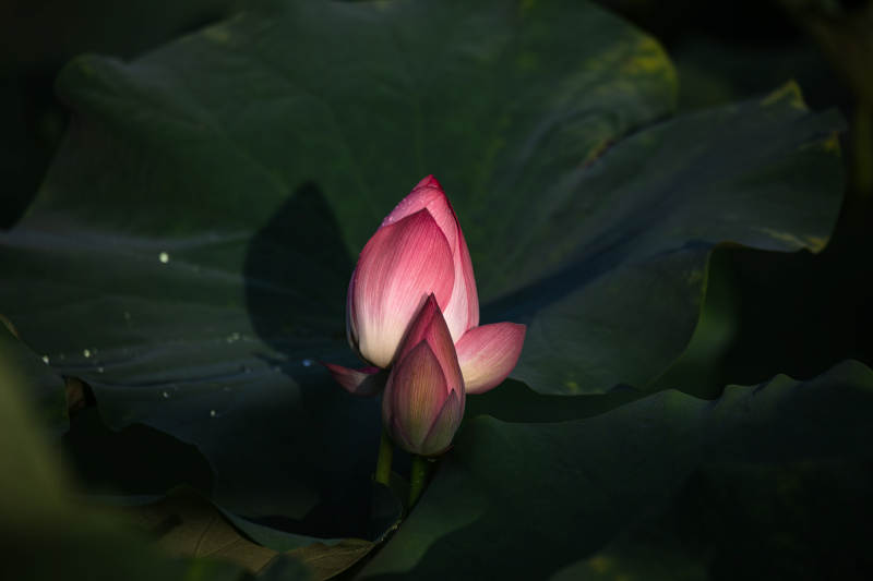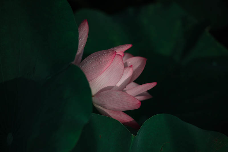 粉莲静绽绿叶间
