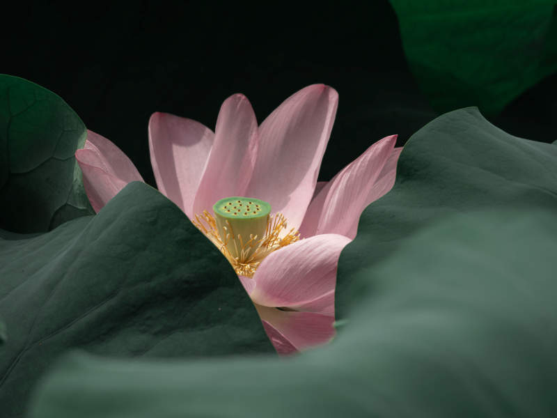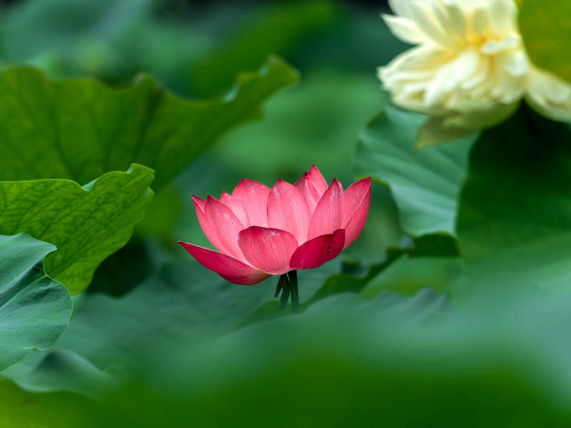 荷花绽放绿叶间