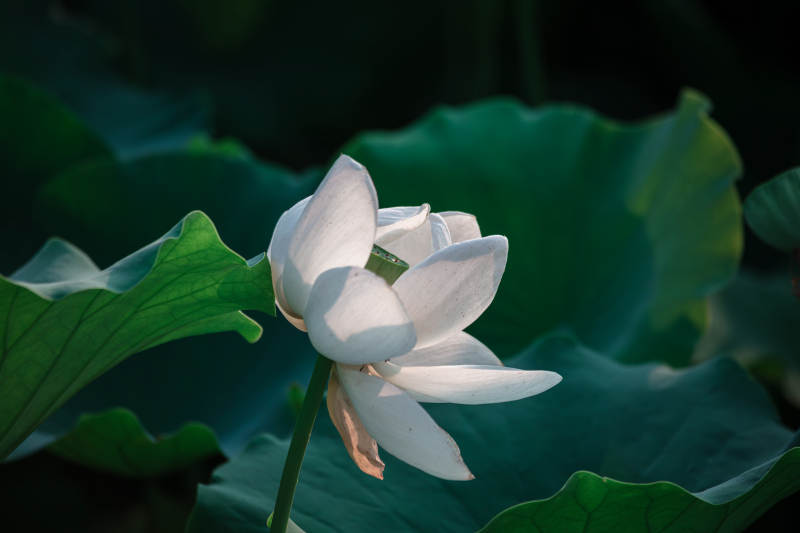 白莲静绽绿叶间