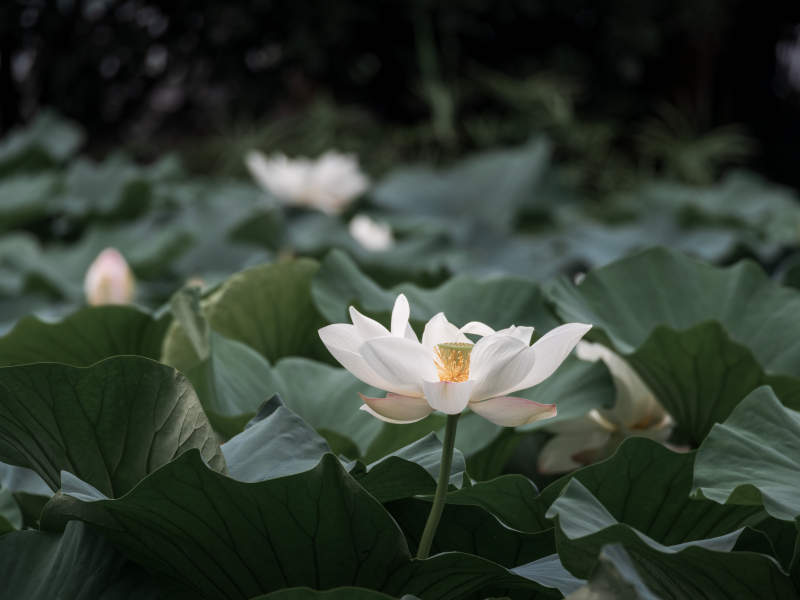 白莲静绽荷塘