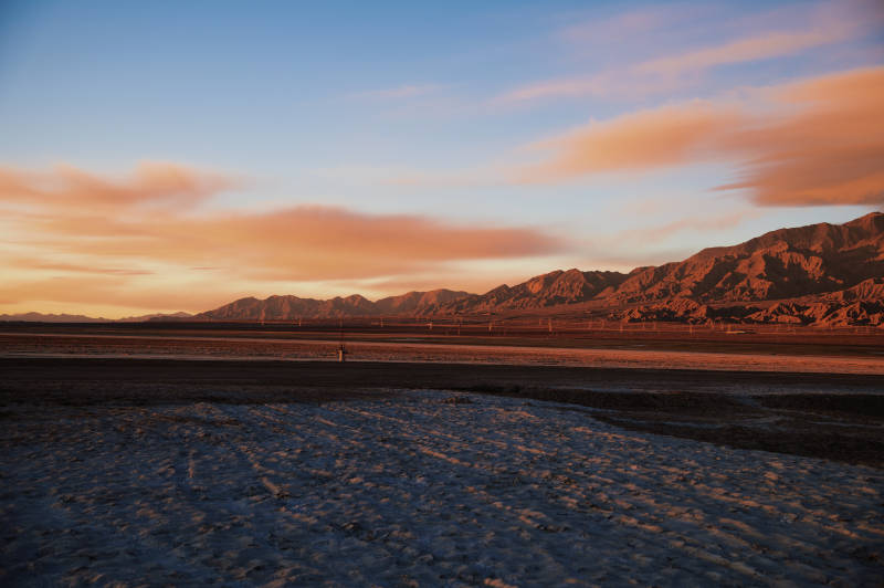 沙漠日落山影盐田