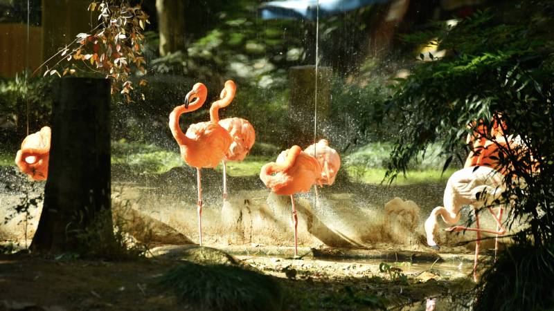 粉红火烈鸟戏水