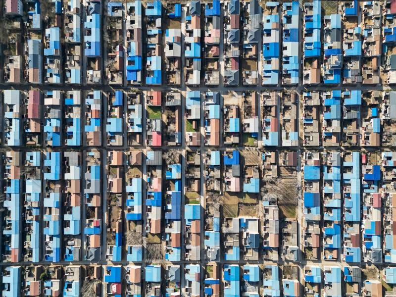 河南俯瞰彩色屋顶小镇
