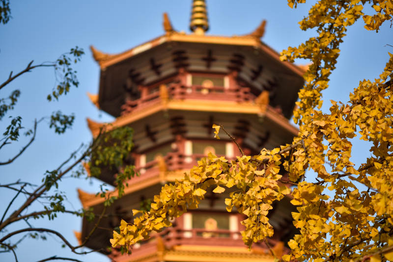 秋叶映塔影
