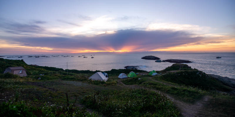 渔山岛海边日落露营图