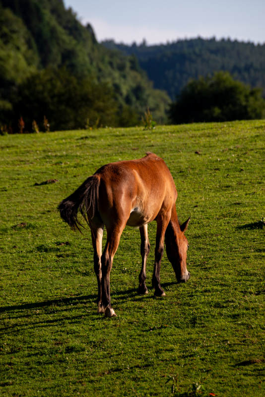 马儿在草地上吃草