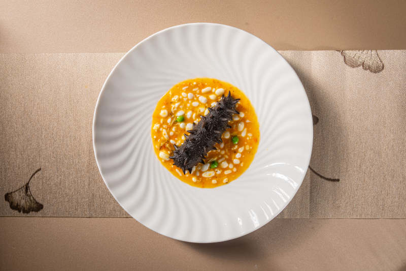 海参配橙色酱汁