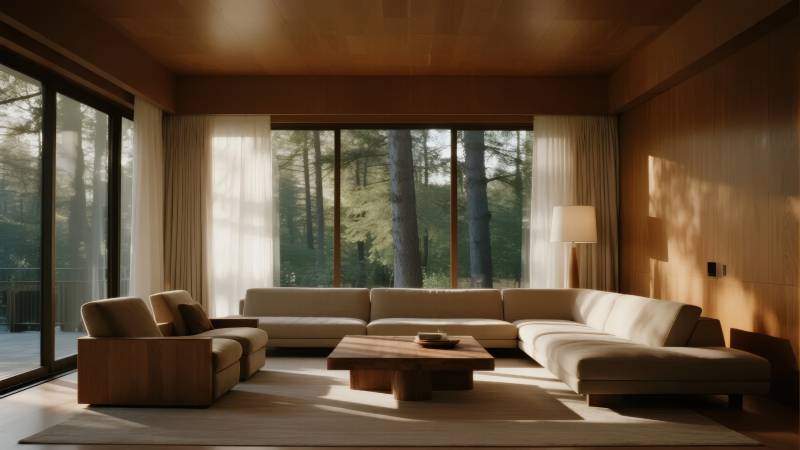 现代木质客厅 窗外绿意盎然