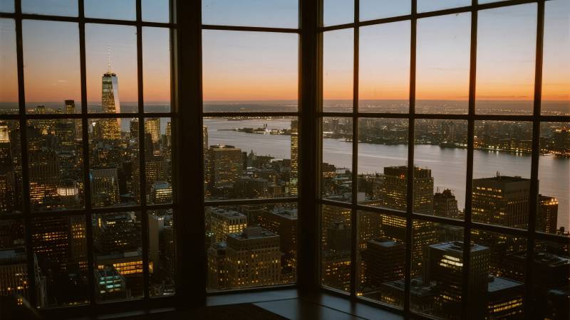 纽约夜景窗前