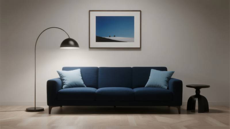 深蓝沙发客厅布置