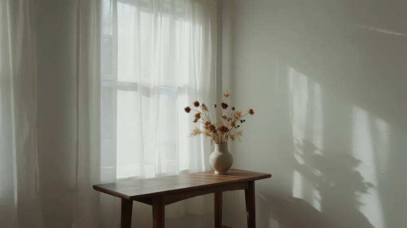 窗边花影静谧时光