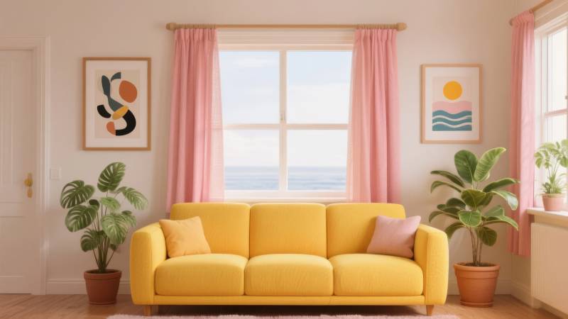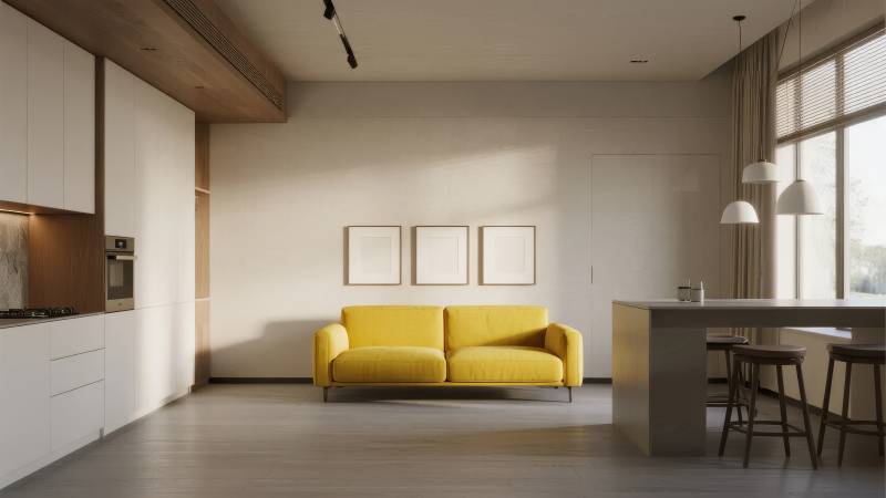 温馨客厅 黄色沙发