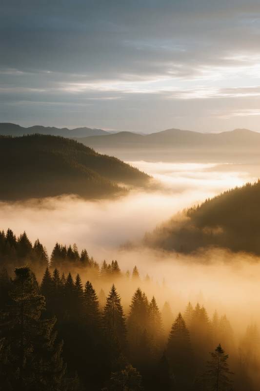 雾锁山林晨曦