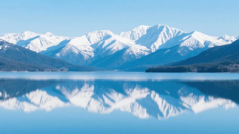 雪山倒影湖面