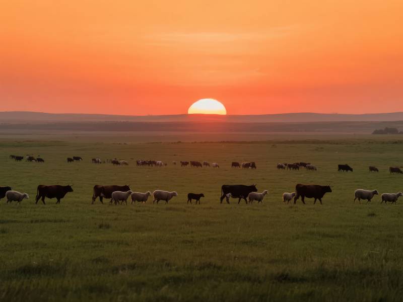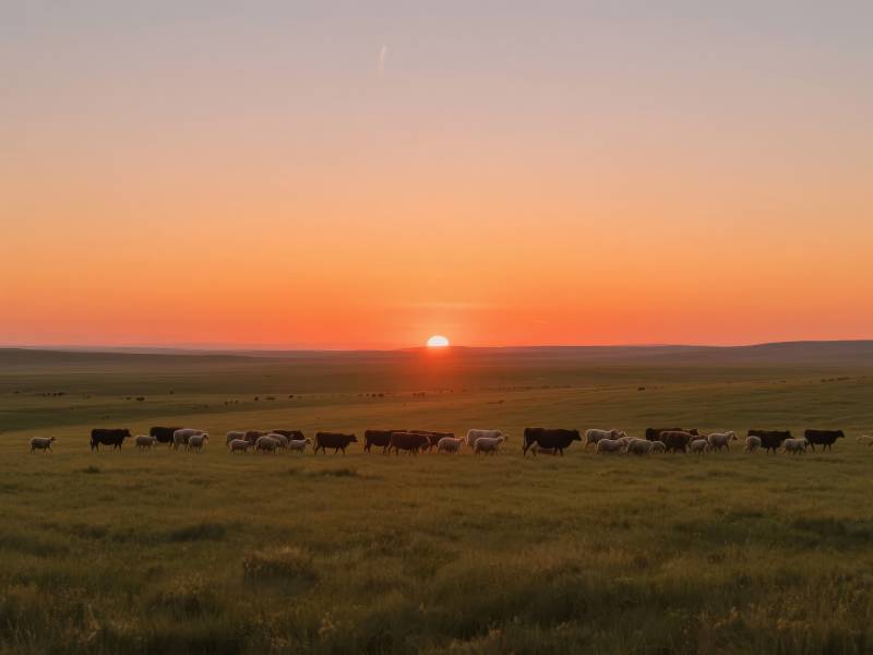 草原日落牛群