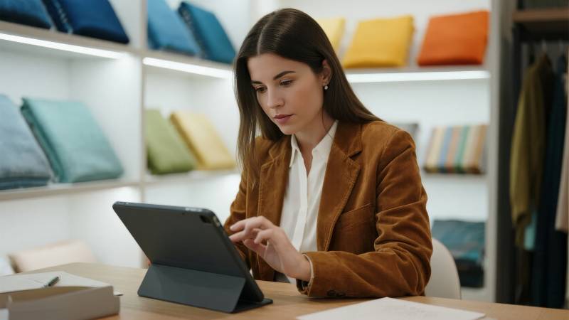 女子在店中使用平板