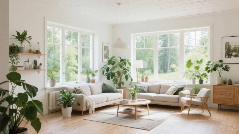 绿植环绕的明亮客厅