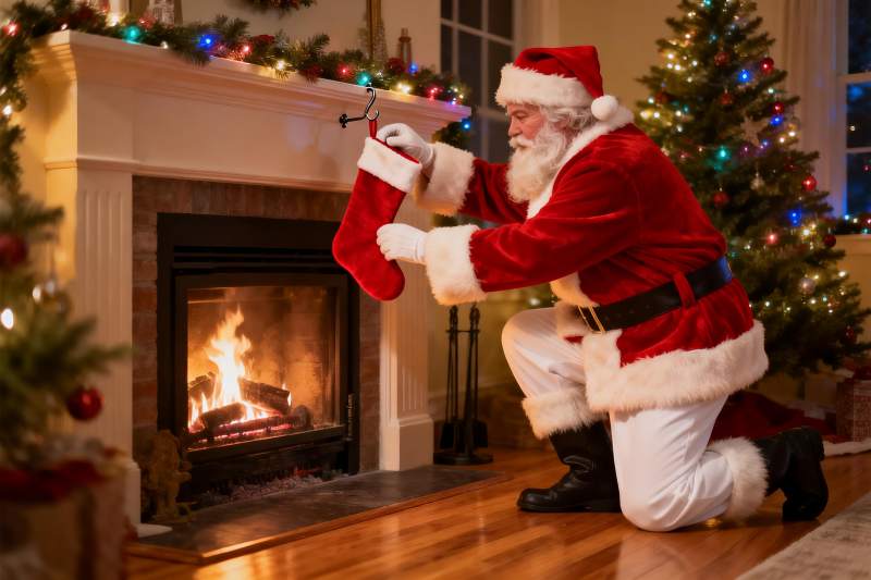 圣诞老人室内挂袜子