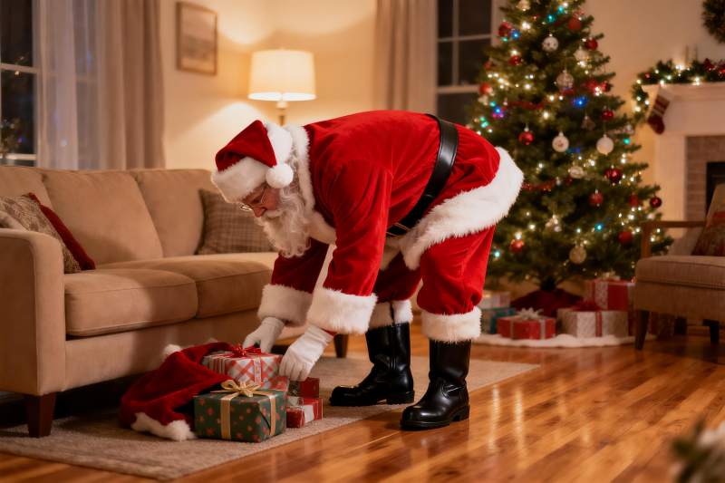 圣诞老人摆放礼物节日场景
