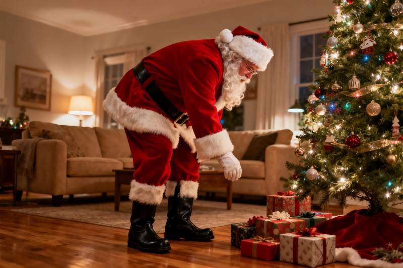 圣诞老人在客厅装饰圣诞树