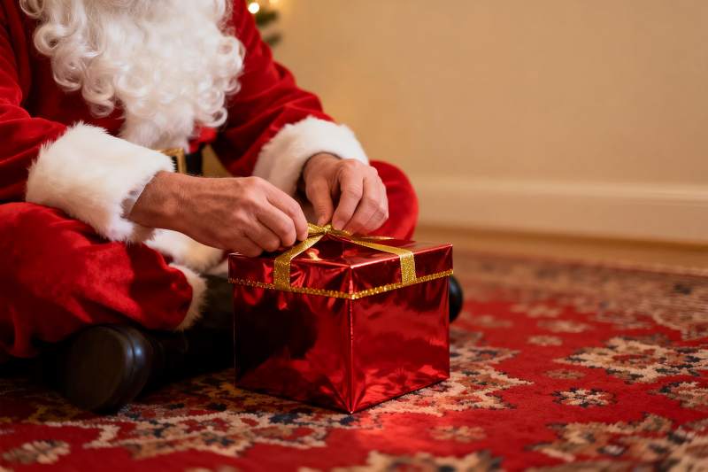 圣诞老人系礼物盒丝带