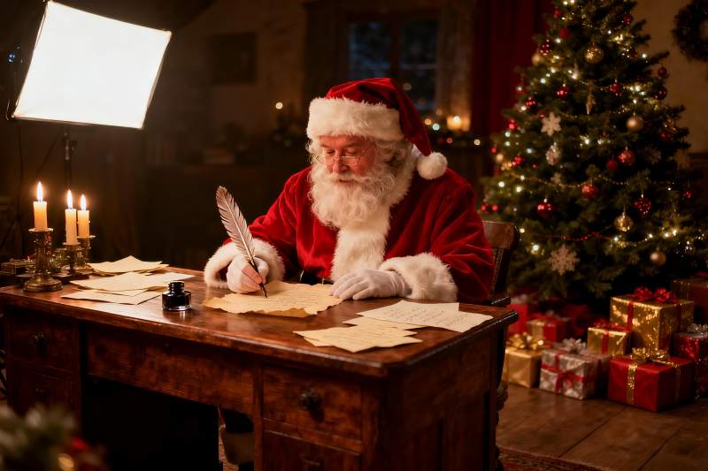 圣诞老人书桌前写信