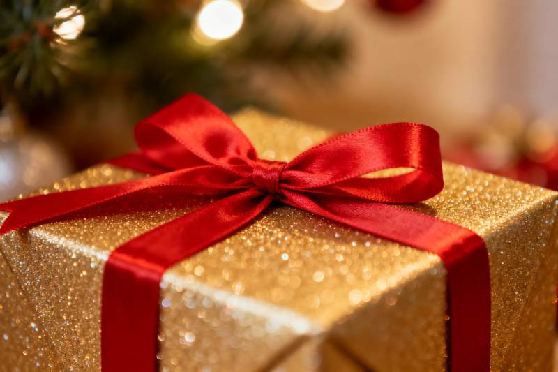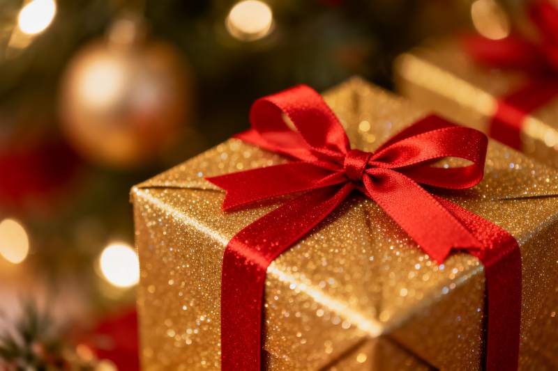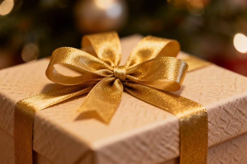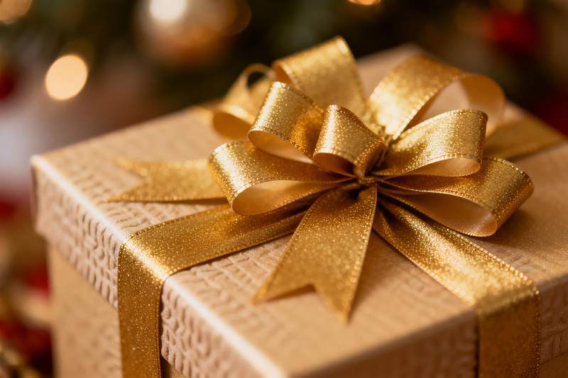 金色丝带礼盒特写