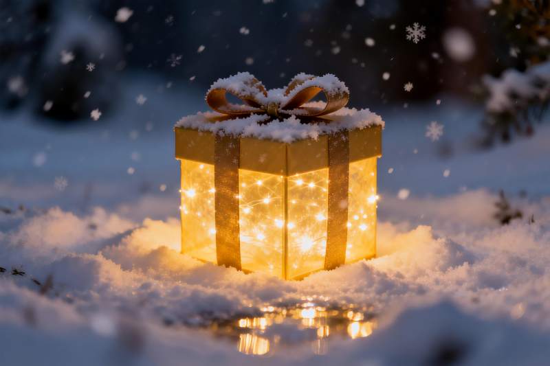 雪地礼盒灯光闪烁