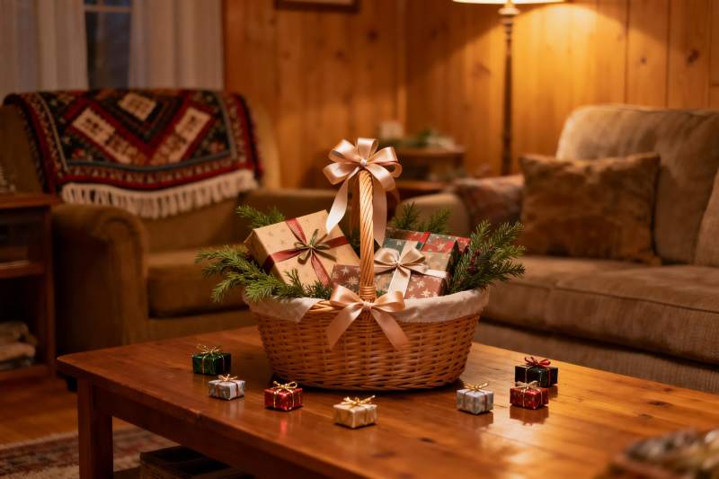 温馨客厅节日礼物篮
