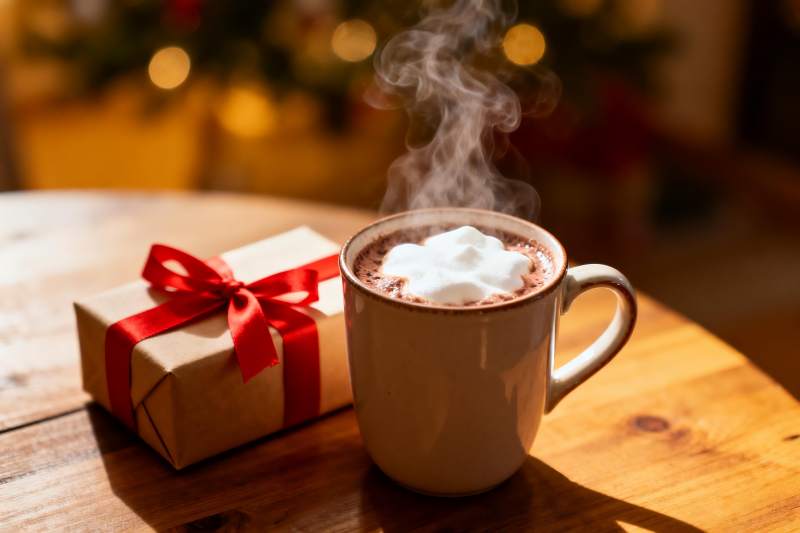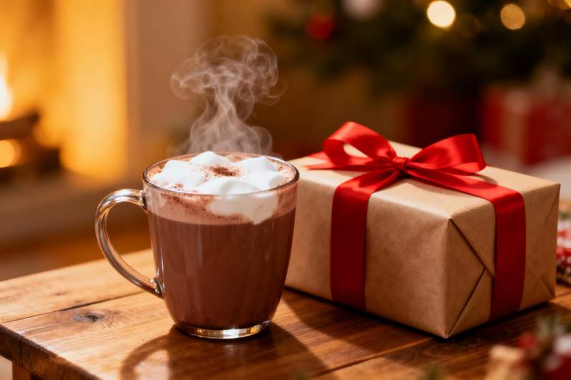 热巧克力与圣诞礼物相伴