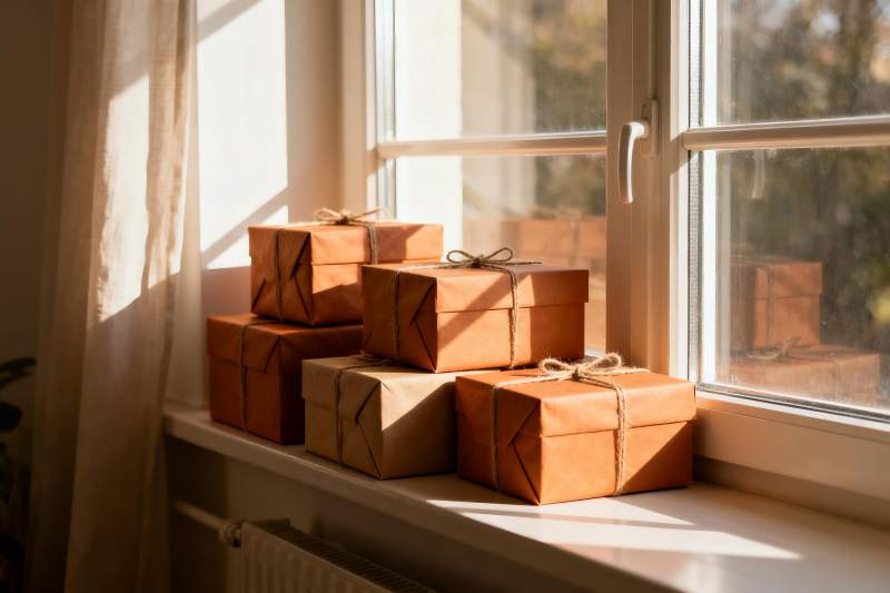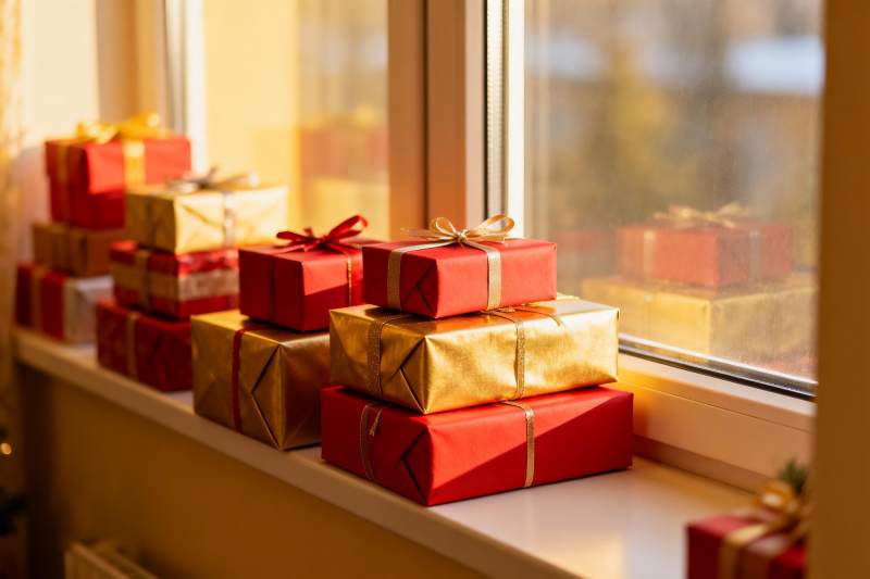 窗台节日礼物堆叠温馨