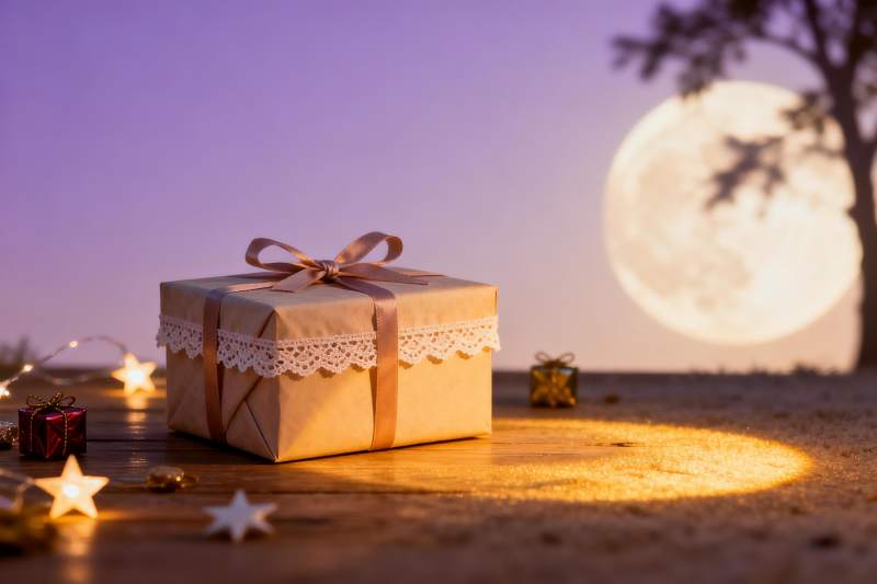 月下礼盒星光点缀浪漫场景