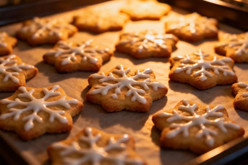 烤箱中雪花形状饼干