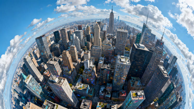 纽约城市鸟瞰图蓝天白云与摩天大楼